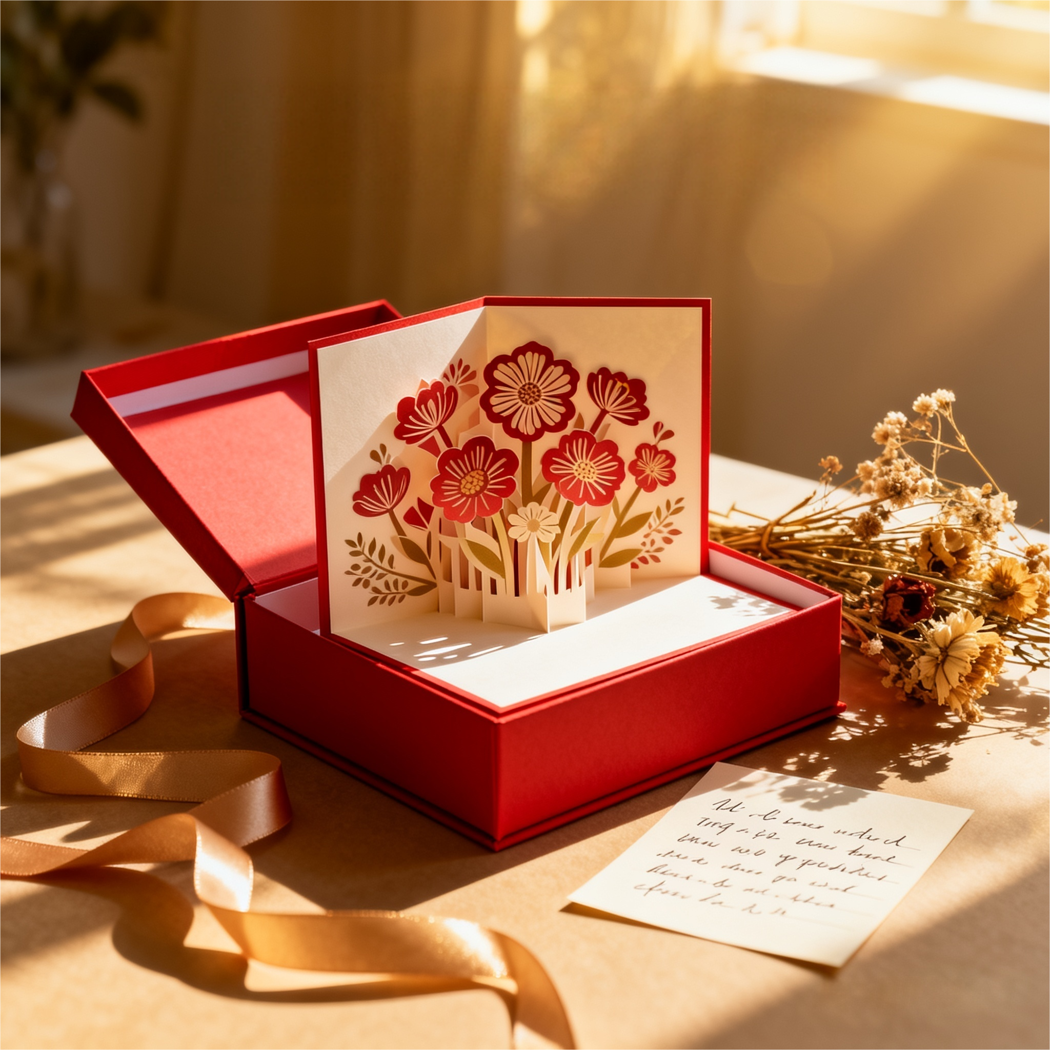 Each card unfolds into a stunning bouquet of paper flowers — vibrant, detailed, and full of warmth.