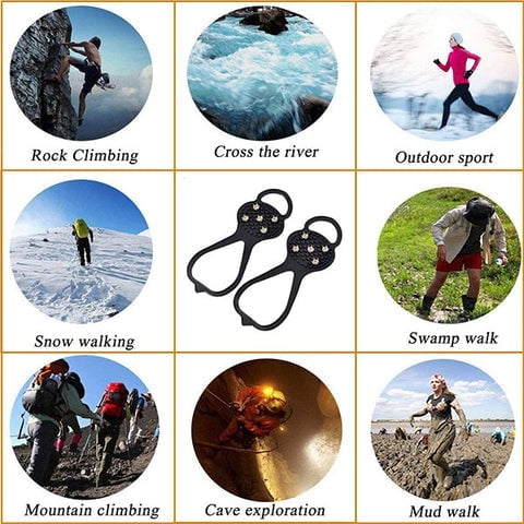 Evita que você escorregue e se machuque ao caminhar na neve ou no gelo.
